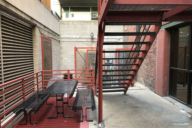 Dave Veldman, of Veldman Morgan Commercial, owns the historic Daniels and Fisher Warehouse No. 2 building at 1422 Delgany in downtown Denver. After the construction of multi-story condo developments on all sides of the property, the owner was left with a postage stamp of a ‘ back yard.’ He asked for a space that would become an amenity for tenants. Arrow B solved a number of code and egress challenges, while creating a gathering space that reflects the existing industrial detail of the building.