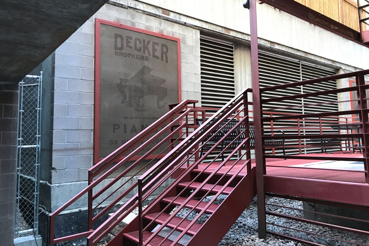 The need for mechanical unit screens created a unique design opportunity to incorporate vintage advertisements reflecting the building’s original use: a warehouse for the Daniels and Fisher Department Store. These contemporary “ghost signs” were screen-printed on perforated metal panels.