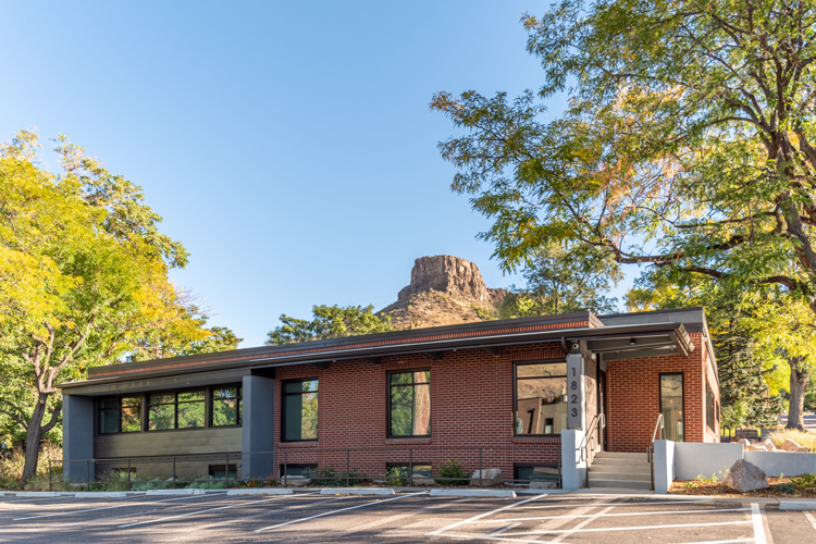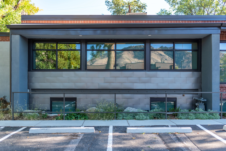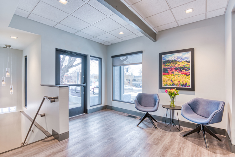 After receiving unanimous approval and positive feedback from the community, the project was ready to go. We chose to embellish the mid-century charm of the original design while updating it to improve natural light, street presence, and elevate the overall design. As the existing structure is in a historic district, the changes required Historic review board approval from the city. The exterior improvements update the finish materials and colors and eliminate the building’s low, bunker-like feel. The entry skylight and uplifted exposed timber structure and tongue-and-groove soffit deck are being restored. The interior, previously a dim maze of small exam and treatment rooms, will be transformed into a sophisticated, open, and airy office with high-end finishes with some industrial flourish.