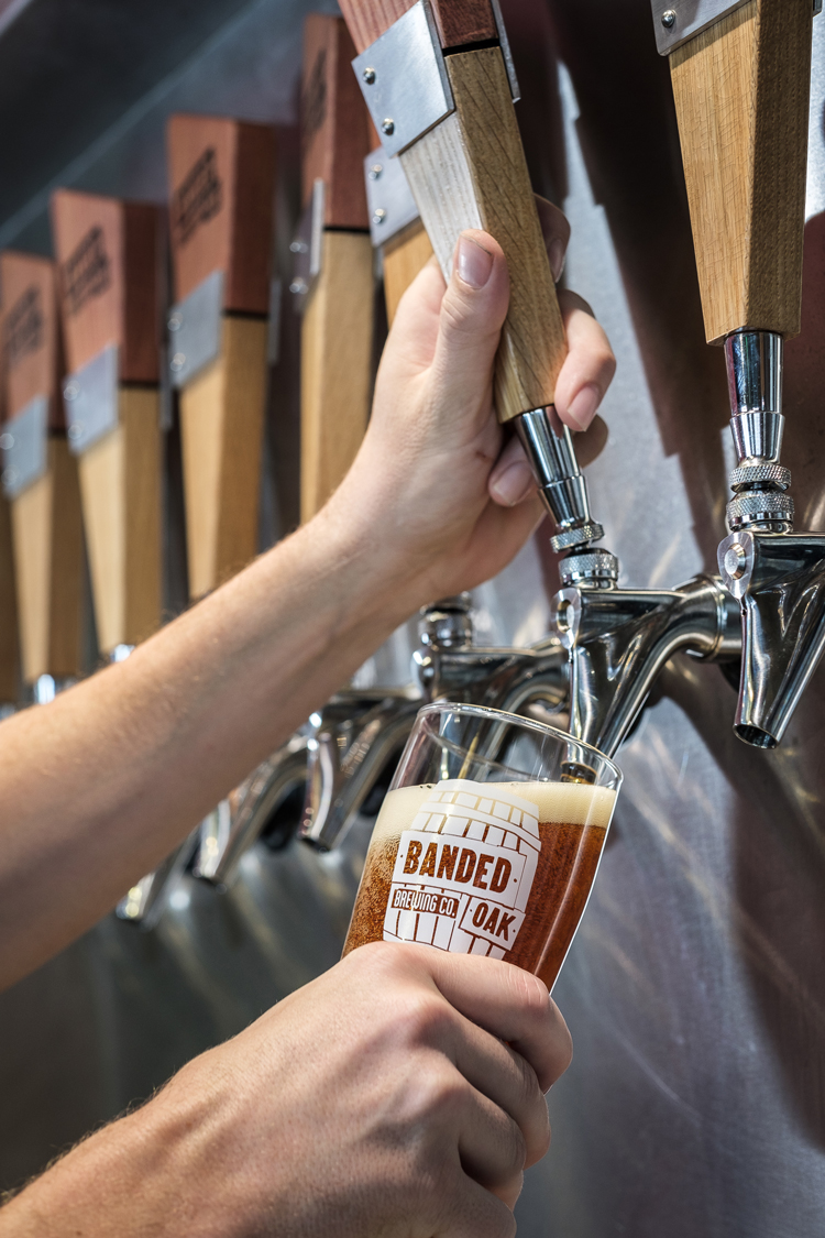 Arrow B is excited to have worked on another project on the Broadway corridor: Banded Oak Brewing Company. The 10-barrel brewery occupies the space that is formerly an auto repair shop and is a tap room and brewery with outdoor patio space. The building is the next door neighbor to several other Arrow B projects on the same block. Arrow B collaborated with Can of Creative, who designed the logo and signage.