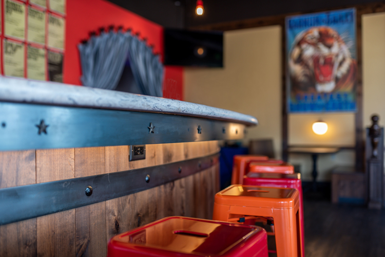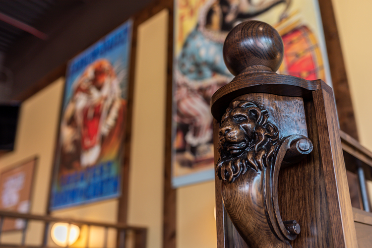 Arrow B utilized family photos as inspiration for the vintage feature wall as well as the Big Top that puts the beer center stage over the curved bar. Custom wood booths by KTM Millwork take their design cues from exotic animal cars and are fit for a king or queen (of the jungle). And multiple details bring whimsy, charm, and quirkiness to this new neighborhood attraction.