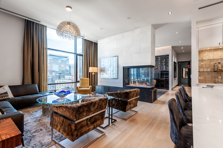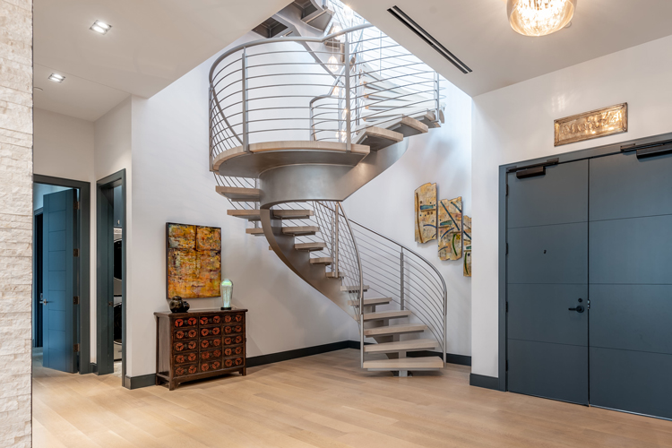 Arrow B had another opportunity to work with Citrus + Steel Interiors and served as architect of record for this exquisite penthouse in McGregor Square in LoDo. If you like moving parts (and goal posts), this project had them. Design and coordination happened during base building construction and included extensive coordination with the base building architect, general contractor, and the Zoning and Building departments with the city. The project scope included construction documentation and coordination of interior scope and exterior, roof-top deck, and landscape by blu design colorado. We are particularly proud of the dramatic spiral stair from the penthouse to the roof deck. Conceived in Rhino to develop the helical cantilevered stringer, the stair is as much art as it is engineering. Base building construction timing prevented the stair from being fabricated off-site, so it was expertly fabricated and finished on-site like a ship in a bottle by Fab Industries.