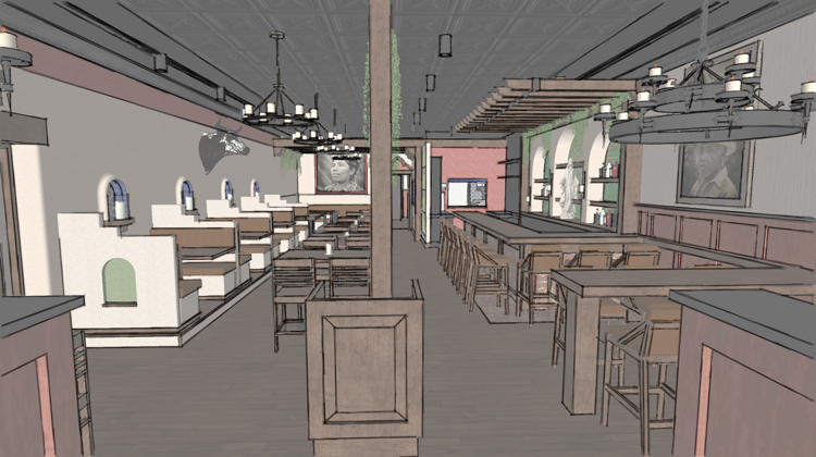 Next Door Bar has been a beloved evening hang out spot for locals for many years, but it is time for the space to be transformed into something new.  Arrow B will be helping this client create a brand-new Mexican restaurant in its place and now the space will operate both day and night.  Despite this being a new renovation, the goal of the design is to make it feel as though it has been around for years and years.  With rustic paint techniques, a deep color pallet and rich new wood elements around the space, it will not be recognizable.  To maximize the space, the redesigned bar is smaller but will be a focal point in the new restaurant that will stand out and also bring the whole space together.