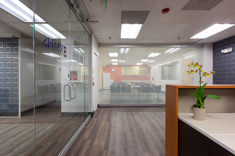 This project is the relocation of the 360 program at Five Points Plaza. The goal was similar – a warm, welcoming setting that customers would feel comfortable in, but still provide a professional and safe environment. The existing space, formerly the television studio for Univision, was a challenging labyrinth. Colors were used not only as accents, but also wayfinding cues for classroom, break and office functions. The final plan included secure entries and office suites, classroom and computer labs and hoteling space for Rocky Mountain Human Services staff at large.
