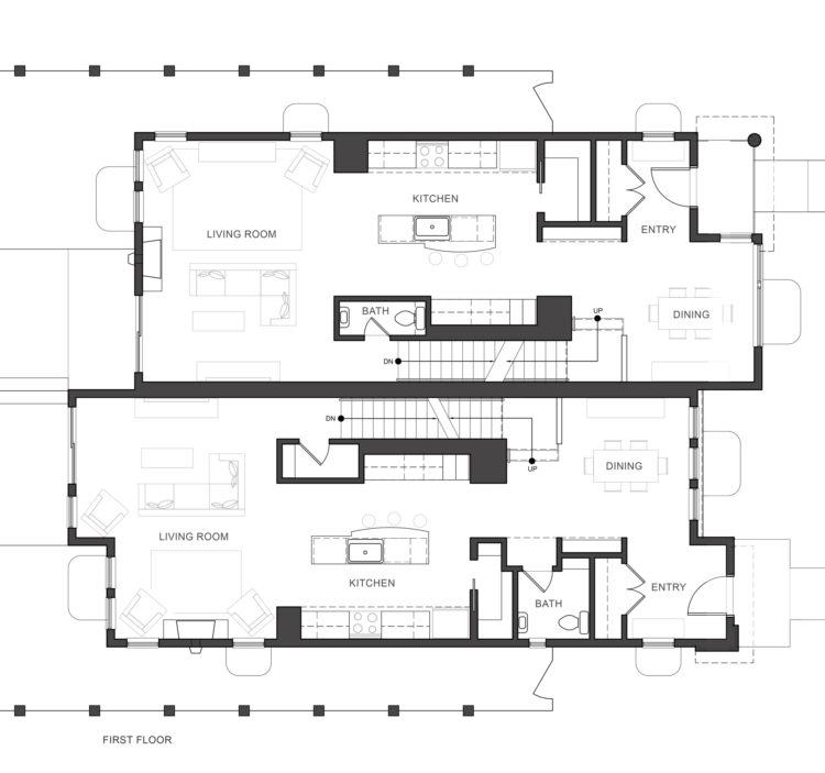 In partnership with Metropolitan Development Inc. and Rivier Properties, Arrow B is excited to develop a series of duplexes in the Overland Neighborhood. Each duplex is two and a half stories and features private decks, open living space and detached garages. Taking mid-century modern design cues from the neighborhood, Arrow B and the developer worked to design façades that are dynamic yet respectful to the context.