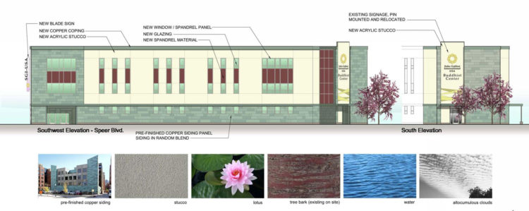 Arrow B was hired to provide concept design and renderings to give the imposing structure a facelift to improve its curb appeal among its newer neighbors, the Denver Justice Center and the Lindsey-Flanagan Courthouse. Drawing on concepts of transience, change, and enlightenment, the new skin references the movement of water in nearby Cherry Creek and provides a softer face to commuters. A dichroic glass art installation – an abstraction of the lotus flower, creates more visible signage and an interplay of color and light that would change throughout the day.