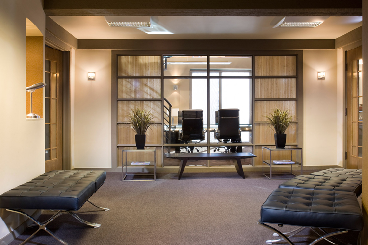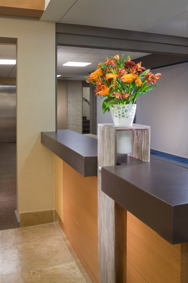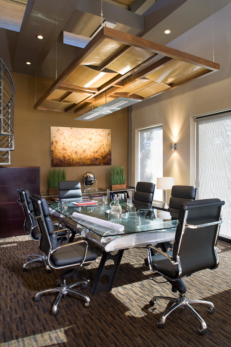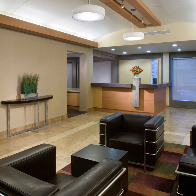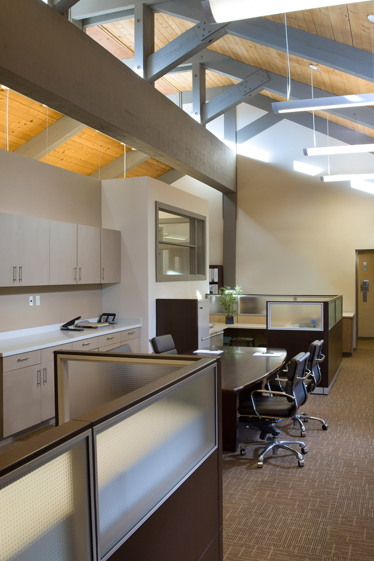 The remaining dark and low ceiling spaces were converted into bright, expansive, open offices and executive suites. The project included classroom, training, and conference facilities as well as a gym and locker rooms.