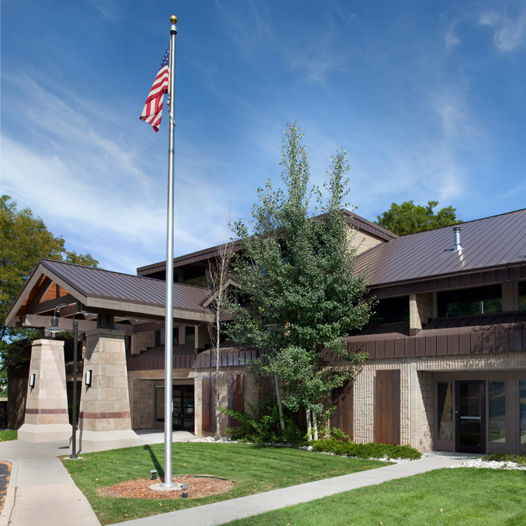 Skyport Development (formerly First Meridian) is a hospitality developer with restaurant and food service projects throughout Colorado. They purchased a building in the Denver Technology Center with the goal of centralizing their management teams under one roof. The existing 20,400 square foot building needed significant updating, including the addition of an elevator. The resulting solution provides accessibility for the building’s three main levels while integrating into the unique original design.