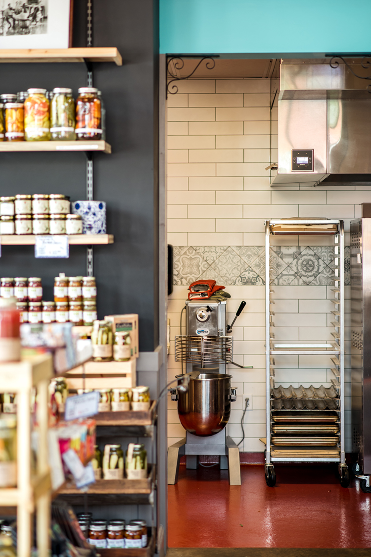 The interior design is as eclectic as the clients– Whitney and Obe Ariss — with a rich combination of color, quirk, reclaimed and contemporary flair. The team pulled together elements from a decommissioned 1920s apartment building, including medicine cabinets for the bathrooms (sure to contain a surprise or two) and an old tailgate from a 1940s Dodge. Butcher block, bead board and wood trim reflect the classic sensibilities of home cooking and an age of preserving fresh foods.