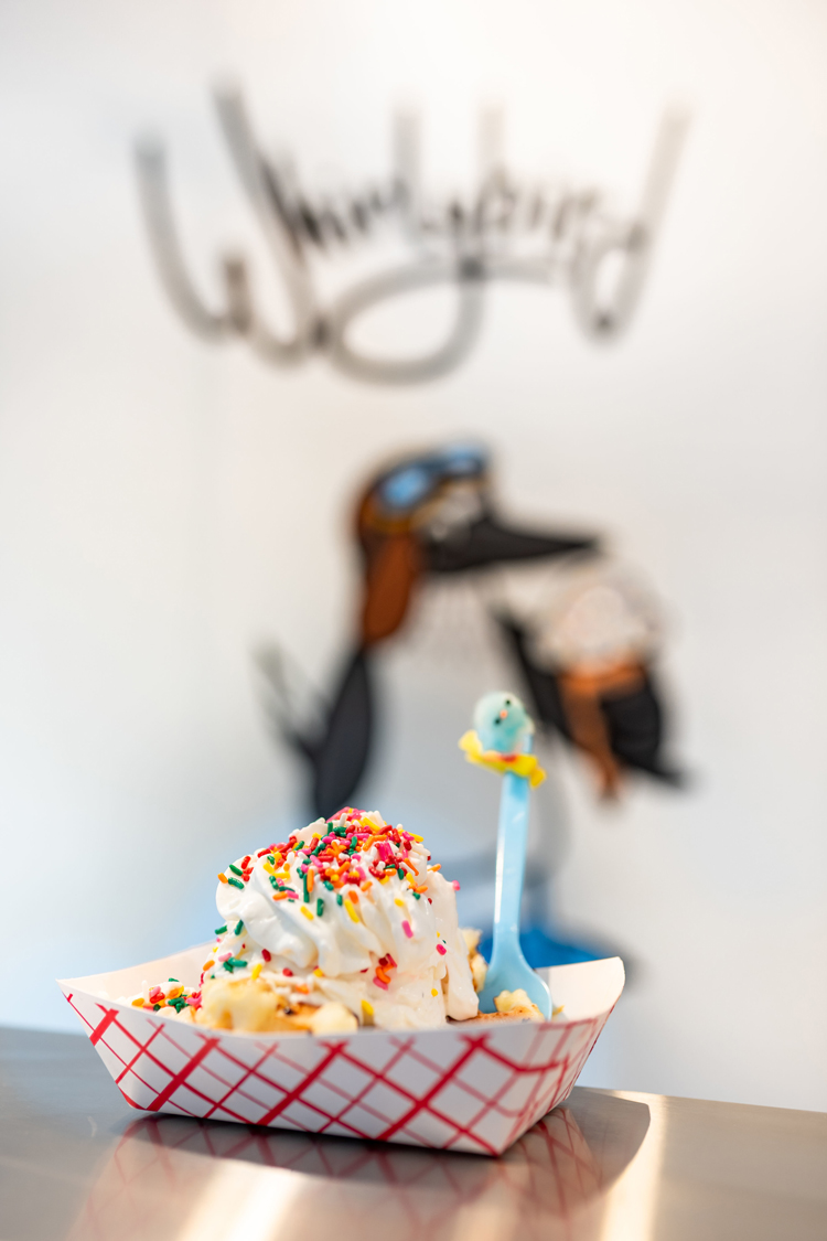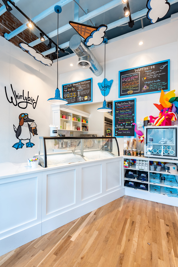 Whirlybird Ice Cream and Waffles and Arrow B searched Denver high and low to find an ideal location for this neighborhood shop. Drawing on the owner’s New England roots, the space needed to have historic character and neighborhood walkability for an underserved community of families and ice cream lovers. Most of the space is production based so the teensy, almost walk-up sized front-of-house derives its charm from simple classic white millwork and clean quartz countertops.