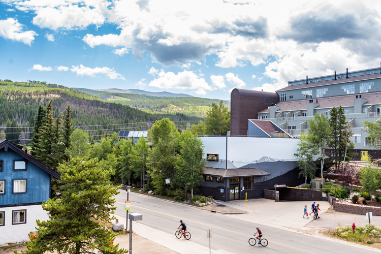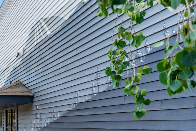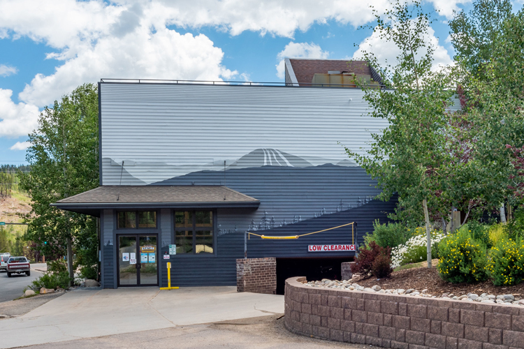 We convinced the client that there was an opportunity to change more than just the color. We collaborated with local artist Shannon Foley Henn to us the building as a canvas and create a stylized mountain scape. What were blank walls is now a continuation of the glorious mountain view, converting the whole building into a piece of public art.