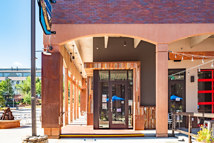 Corten cladding, reclaimed wood siding, and accent lighting bring mountain charm to the nondescript 80’s structure. On the north end a contemporary entry vestibule anchors the corner and brings prominence to the brewery while providing balance to the activity of the Transit Center to the south. Glazed overhead doors on the brewery bring the outside in and a large patio engages the adjacent, and always bustling, Cooper Creek Square.